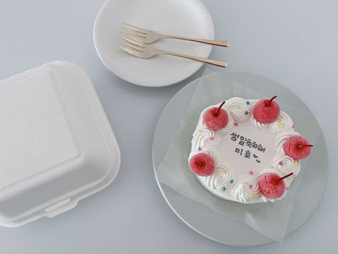 韓国で人気のセンイルケーキがランチボックスに入ったケーキになります。
